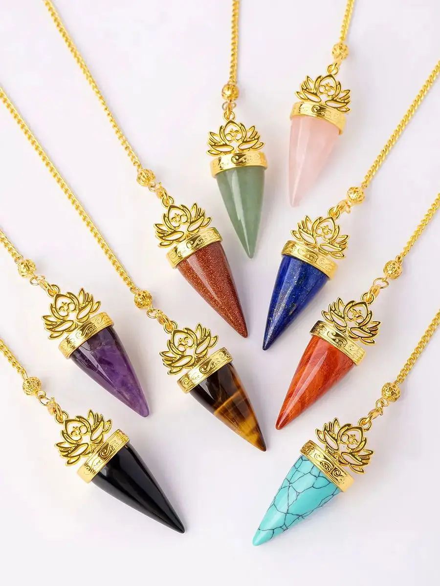 1Pc Natural Crystal Spiritual Pendulum Pendant Golden Cone Bullet Crystal Pendulum Prophecy Divination Healing Meditation Gift